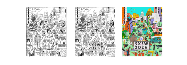SXSW 2026 marks 40 years of our homegrown event, and this year, we’re transforming downtown Austin into a global, week-long village for creatives and innovators that will spill out across the city. Every year, we commission an artist to help capture the zeitgeist of the SXSW year ahead, so naturally, Josh was the perfect fit. Now more than ever it feels like creatives and innovators need to be together to solve big problems and keep the fires lit when it feels especially chaotic.
