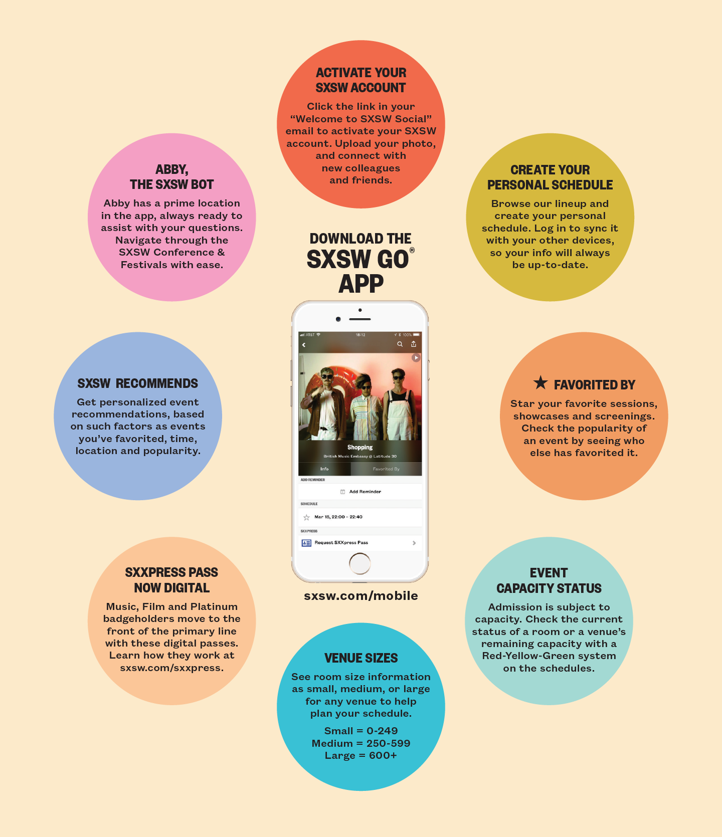 Download the SXSW GO mobile app to start planning your SXSW 2018 experience today. Browse our continuously updated lineup of programming and build your schedule online at schedule.sxsw.com or directly on your mobile device.